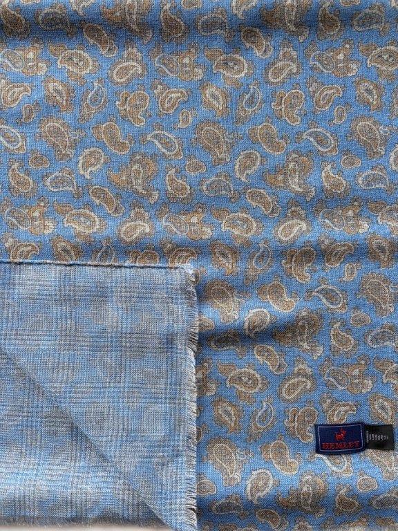 100% Wolle beidseitig bedruckt ca. 45 x 180cm Enden mit feinen Fransen 1 Seite mit Paisley bedruckt 1 Seite mit Glencheck bedruckt Hemley Webetikett