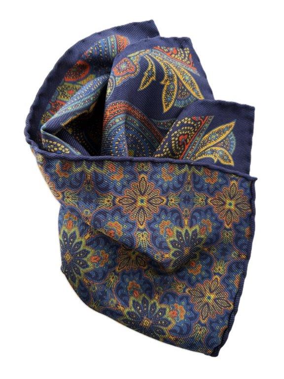 100% Seide beidseitig bedruckt 1. Seite Paisley 2. Seite Ornament ca. 30 x 30cm handrollierter Saum