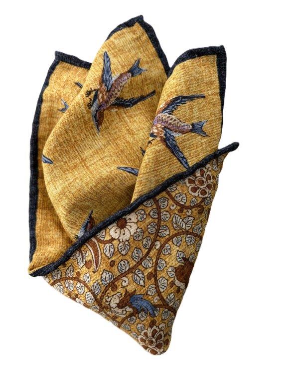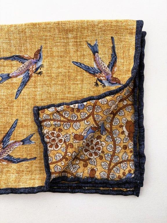 100% Seide beidseitig bedruckt 1. Seite Schwalben Design 2. Seite Ranken ca. 30 x 30cm handrollierter Saum