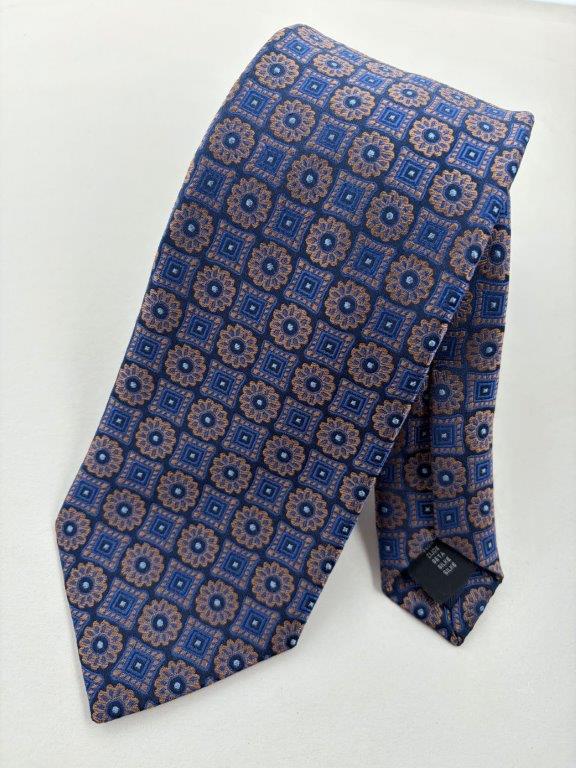 Krawatte Seide extralang Klassisches Muster blau gold