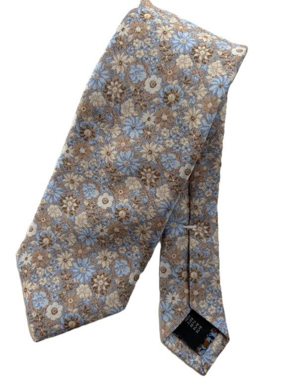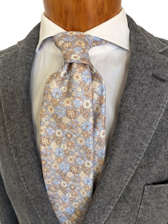 Krawatte Seide extralang Streublumen grau hellblau sand